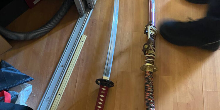 Дослівно поліція: “Ми встановили місце проживання ймовірного порушника. Двері до квартири відчинив громадянин, який агресивно поводився та тримав у руках меч. Інспектори затримали чоловіка та дізналися, що він заховав гвинтівку, якою погрожував заявнику, на коридорі”.