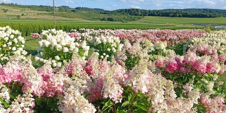 У селі Стрілки неподалік Львова розквітло поле гортензій. Про це пише АгроТер.