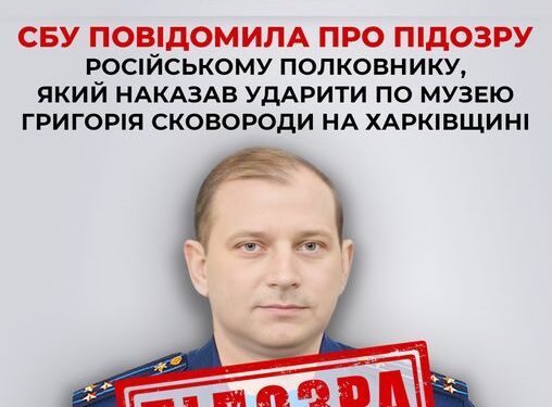 СБУ повідомила про підозру російському полковнику, який наказав ударити по музею Григорія Сковороди на Харківщині.