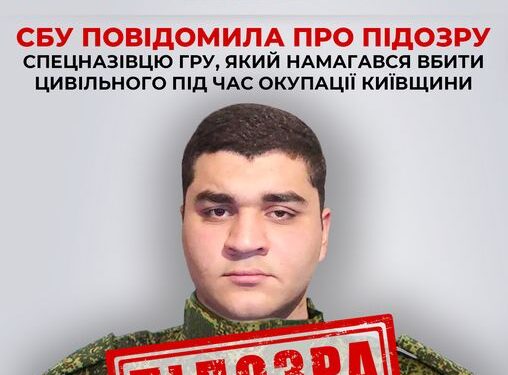 СБУ повідомила про підозру спецназівцю гру, який намагався вбити цивільного під час окупації Київщини.