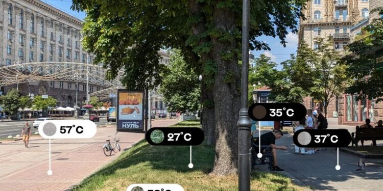 Дослідження покликане наочно показати, як озеленення допомагає охолодити місто під час спеки. Вимірювання проводили 14 липня 2024 року інфрачервоним пірометром “Benetech GM321” на популярних для містян і туристів локаціях: Володимирській гірці, сквері біля кінотеатру “Жовтень” на вул. Хрещатик і Спаська, Галицькій площі та Андріївському узвозі.