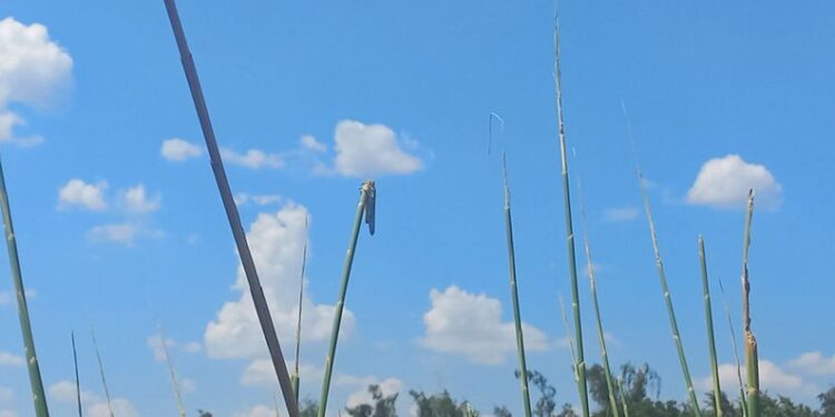 Востаннє, каже Микола, сарану бачили біля річки, в очереті, кілька днів тому. Після себе вона залишила голі стебла.