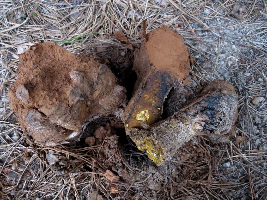 “Сосновий ліс на кварцовому піску. Пізоліт безкореневий, Pisolithus arrhizus, ЧКУ, Природоохоронний статус виду – Рідкісний”, – написав він та розмістив фотографію зроблену 21 липня в с.Стригани Шепетівського району.