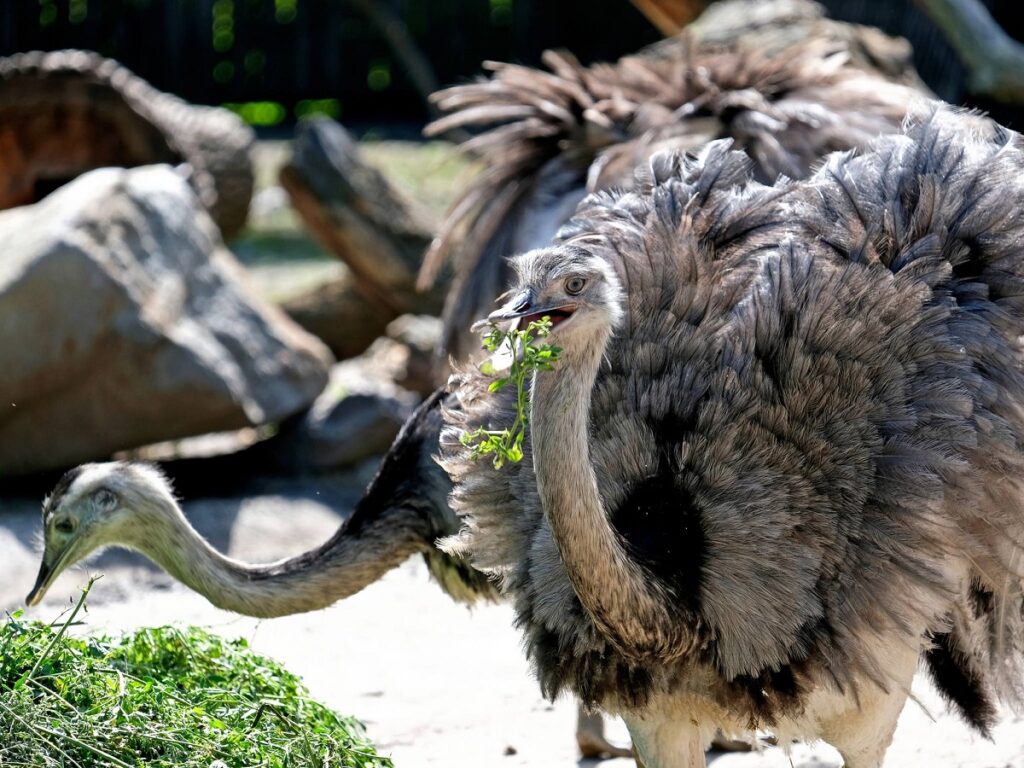 Побачити врятованих Нанду у компанії гуанако можна наприкінці копитного ряду біля вольєру капібар.