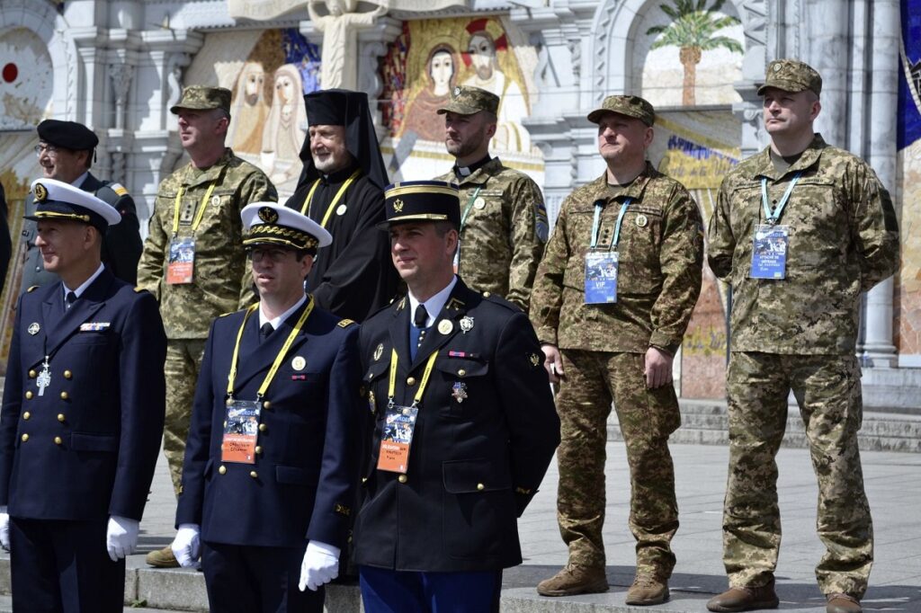 “До міжнародної молитви за мир долучилася делегація з України, очолювана владикою Михайлом Колтуном, керівником Департаменту військового капеланства УГКЦ. До складу групи входили представники Міністерства оборони України, Служби військового капеланства ЗСУ, Служби військового капеланства НГУ, родини полеглих героїв, поранені воїни, курсанти та військові капелани”, – йдеться в повідомленні.