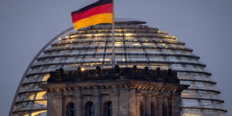 Державний прапор Німеччини на вершині будівлі Рейхстагу в Берліні, Німеччина, 31 серпня 2023 року. AP