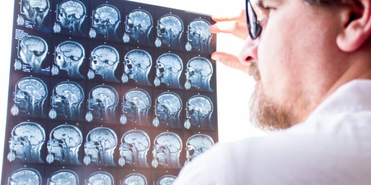 Лікар-невролог по знімках оцінює результати МРТ мозку пацієнта. Getty Images/iStock