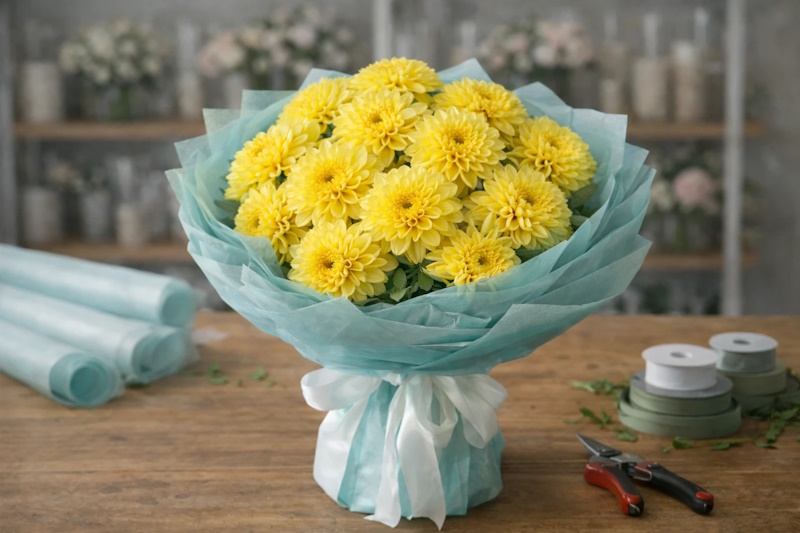 Когда композиция многоцветная, сама палитра уже несёт достаточно информации, и дополнительная графика легко превращается в перегруз. В таких ситуациях однотонная калька выполняет роль «выравнивателя»: она помогает собрать оттенки в единую тональную рамку и не создаёт конкурентов внутри кадра. Если вы всё же хотите добавить характер, лучше делать это через один контролируемый элемент — например, ленту или спокойную фактуру — а не через многокрасочную печать. Для «кальки для цветов» практично выбирать оттенок, который поддерживает ведущий тон, а не повторяет каждый цвет внутри. Так вы избегаете эффекта «всё сразу» и сохраняете понятный акцент. В результате форма читается стабильнее, а сборка остаётся повторяемой, что особенно важно в серийной работе и на витрине.