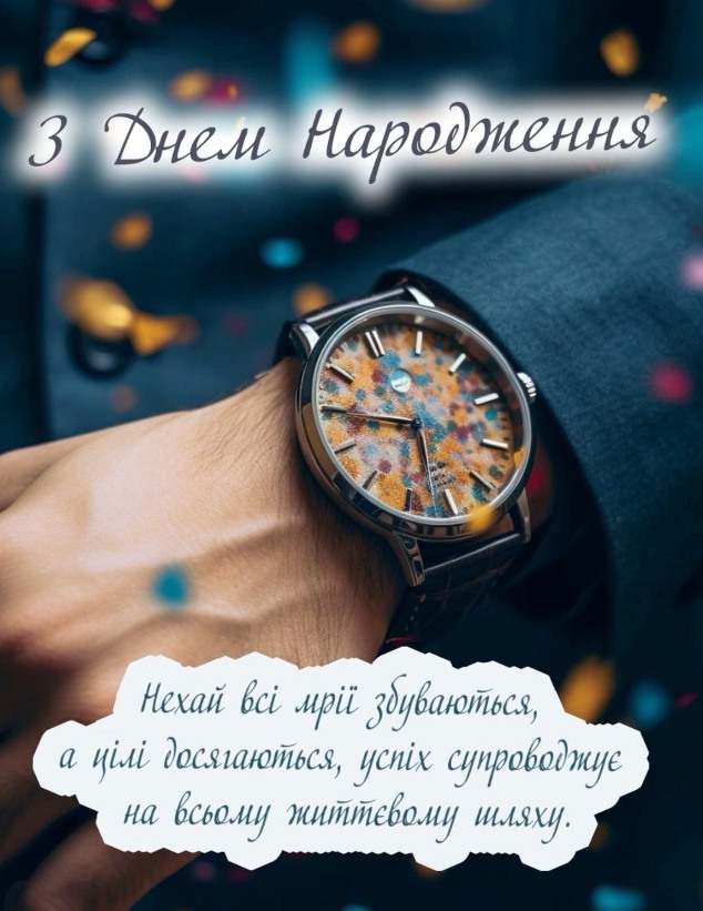 З Днем народження! Нехай тобі завжди вистачає сил, енергії та натхнення на нові перемоги. Вперед до успіхів!