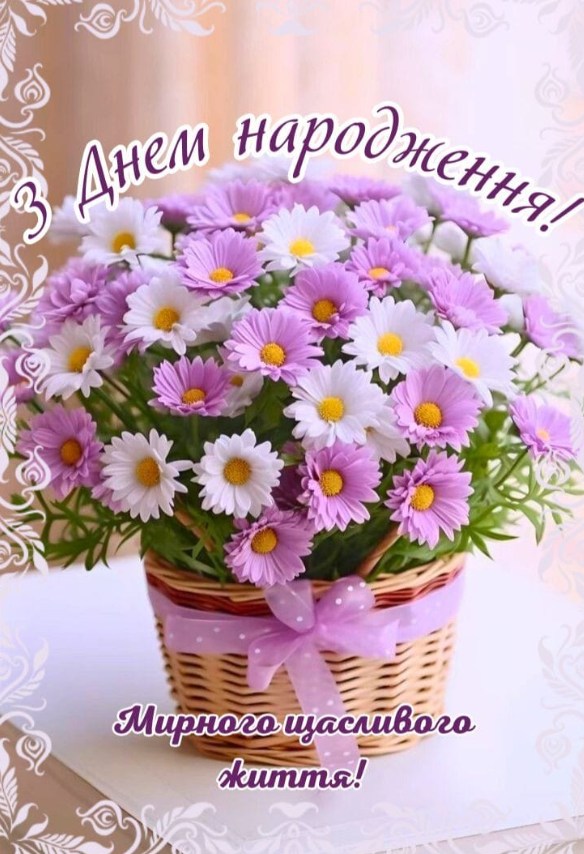 З Днем народження! Нехай краса твоя лише розквітає, мрії здійснюються, а життя буде сповнене чудових подій.