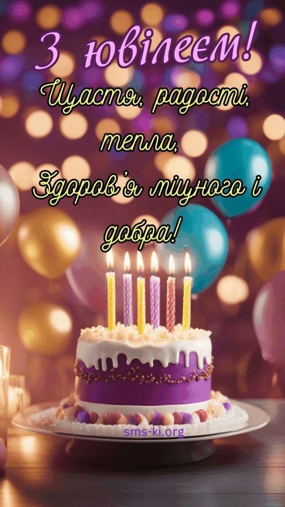 Вітаю з твоїм ювілеєм! Бажаю, щоб твоє життя було наповнене теплом, спокоєм і світлом. Нехай кожен день приносить приємні несподіванки і яскраві емоції.