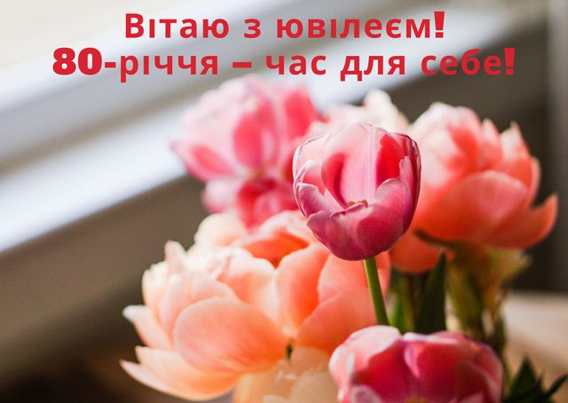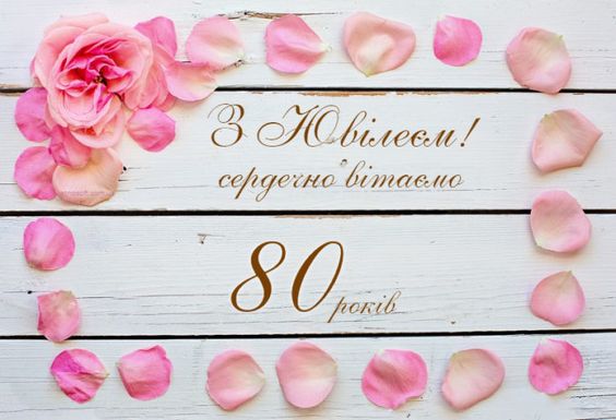 З нагоди 80-річчя хочемо побажати тобі здоров’я, благополуччя і душевного спокою. Нехай кожен новий день приносить радість, а поруч завжди будуть добрі люди.
