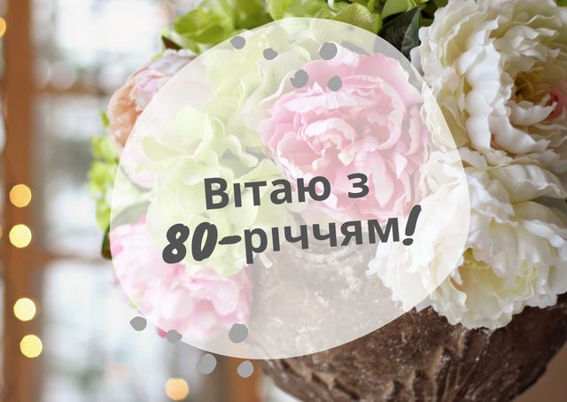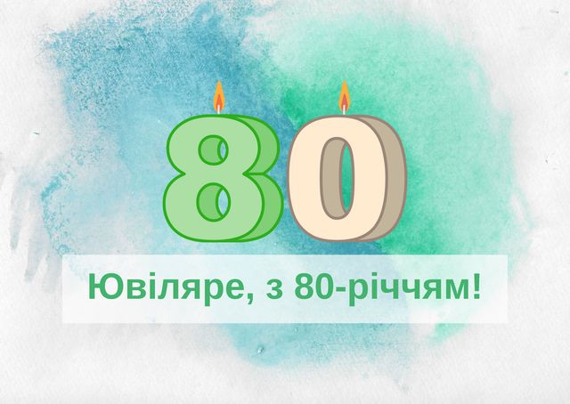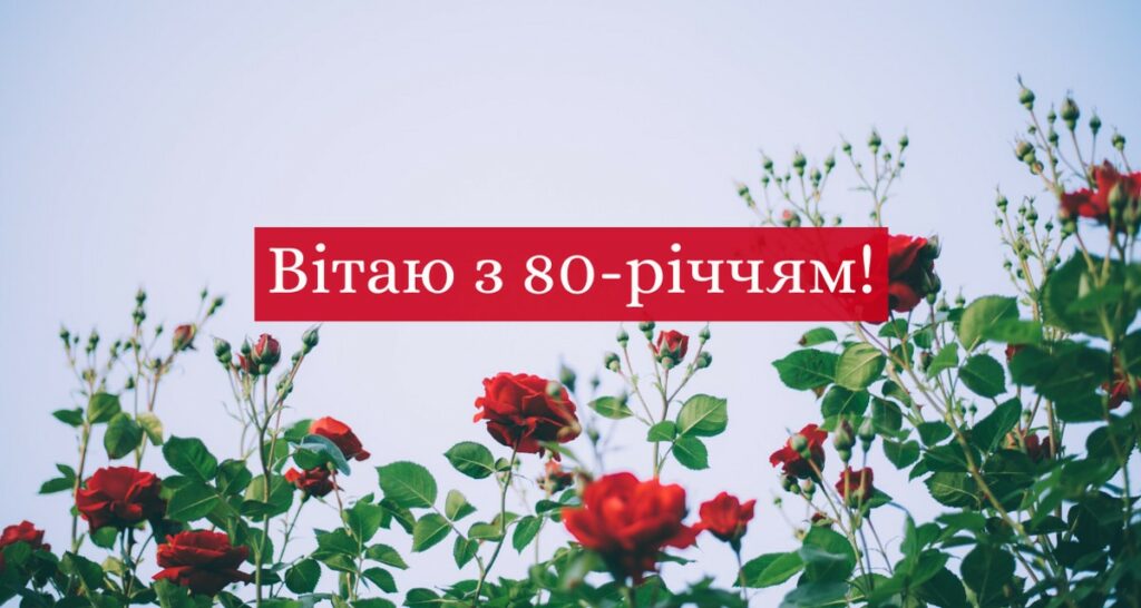 Вітаємо з 80-річчям! Це цілий світ перемог, мудрості та досягнень. Бажаємо тобі міцного здоров’я, радісних подій і гармонії в серці. Нехай рідні завжди оточують теплом і турботою.