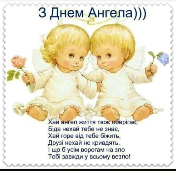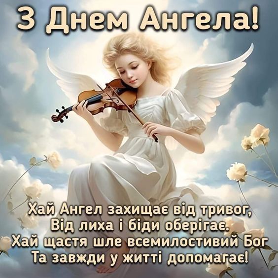 Вітаю тебе з Днем ангела! Нехай кожен день приносить тобі нові можливості, щастя і радість, а твій ангел-охоронець буде поруч у будь-якій ситуації.