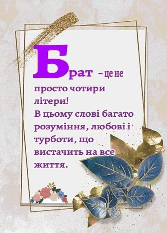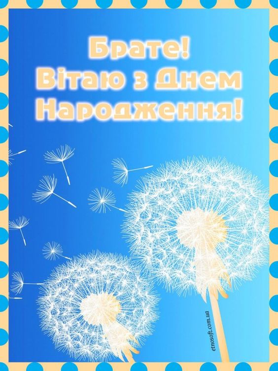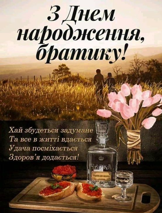 Брате, з Днем народження! Бажаю тобі гармонії, здоров’я та досягнення всіх твоїх цілей. Ти — людина з великим серцем і сильним духом, і я гордий, що ти мій брат.