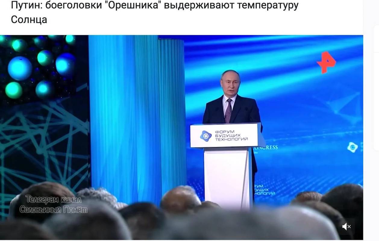 Російсьий диктатор Володимир Путін вирішив похизуватися своїм Орешником і сказав, що його боєголовки нібито витримують температуру Сонця. Однак, у заявах диктатора є суттєві невідповідності. Про це заявив полковник запасу ЗСУ, льотчик-інструктор, військовий експерт Роман Світан, передає 24 Канал.