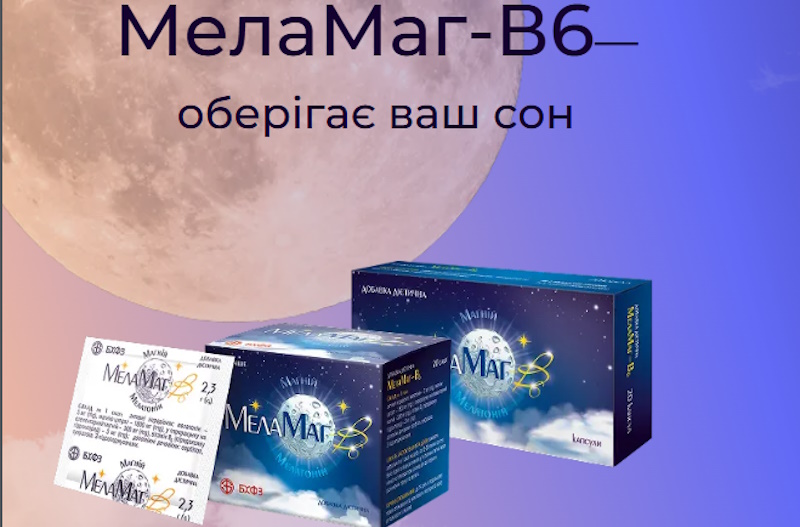 **Магній** відіграє роль сполучної ланки між фазою стресу та фазою релаксації. Він знижує нейром'язову збудливість, блокує надмірні нервові імпульси, бере участь у регуляції тонусу судин і полегшує перехід від активності до відпочинку. Його присутність у складі МелаМаг-В6 посилюється **вітаміном В6**, який покращує засвоєння мінералу, а також впливає на синтез **серотоніну** — речовини, що служить основою для виробництва мелатоніну. Таке поєднання працює як інструмент поступового «заспокоєння» нервової системи.