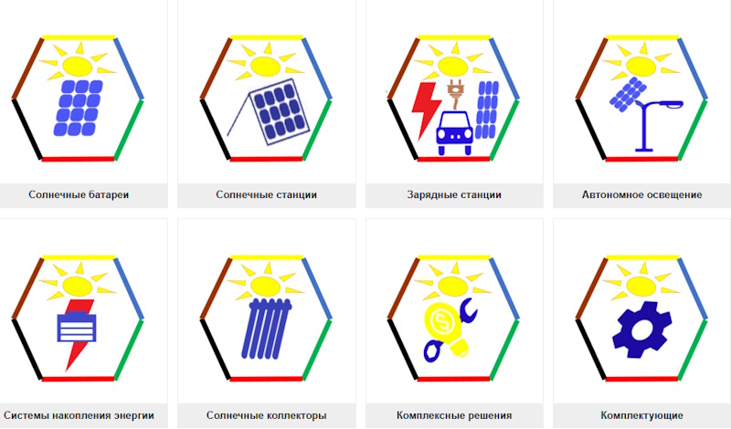 В каталоге собраны солнечные панели, инверторы, контроллеры заряда, аккумуляторы и крепления, а также зарядные станции, автономное освещение и солнечные коллекторы. Отдельным блоком идут готовые солнечные станции разной мощности — сетевые решения «под зеленый тариф» и комплекты под собственное потребление.