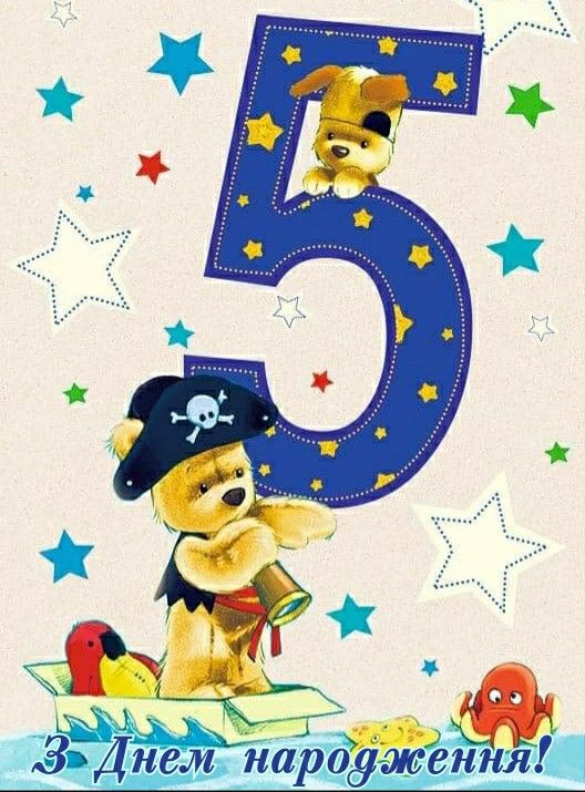 Тобі вже п’ять, маленький друже, Хай буде радість, тепло і сміх. Нехай усі твої мрії здійсняться, І світиться сонечко для тебе всіх.