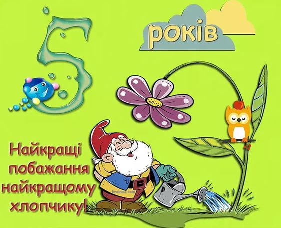 Маленький наш ювіляр, Тобі сьогодні — п’ять! Хай життя твоє буде світлим, І весело мріє душа.