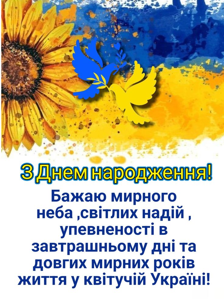 Щиро вітаю з днем народження! Нехай кожен день дарує тобі радість і натхнення, а поруч завжди будуть ті, хто щиро тебе любить і цінує. Здоров’я, миру і багато щасливих днів!