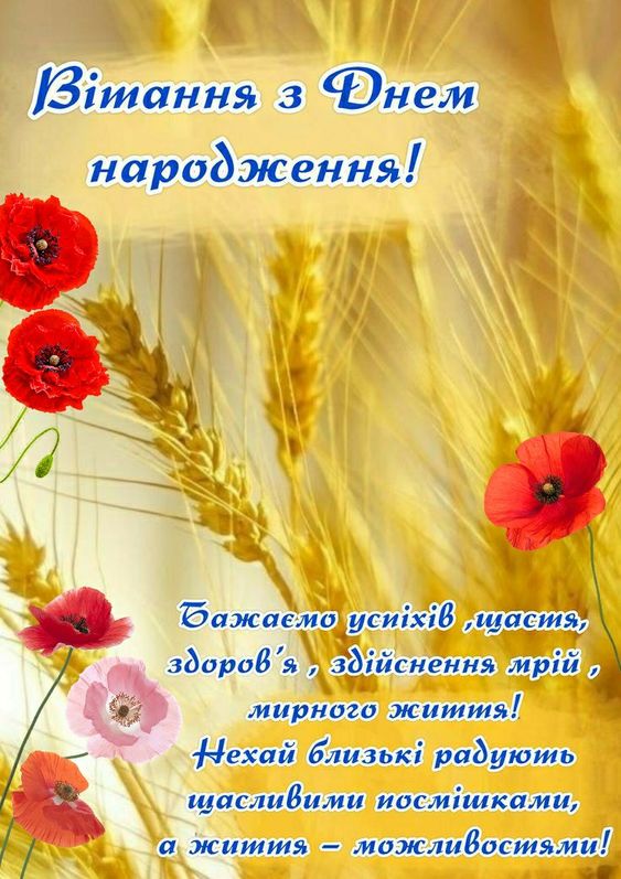 Вітаю з днем народження, дорога! Бажаю, щоб у твоєму житті завжди панували злагода, добробут і щастя. Нехай кожен день буде таким же барвистим, як квітучий український сад. Щастя тобі, здоров’я і здійснення всіх твоїх мрій!